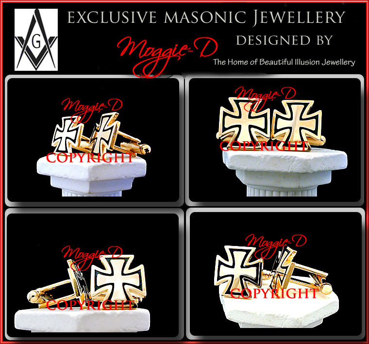 These cufflinks have been skillfully crafted from Highly polished Genuine 14kt Yellow GOLD which has been electroplated over a base of jewellers semi-precious metals. A Black enamel outline accentuates the Knights Templar Cross Design & the overall effect is just sensational!