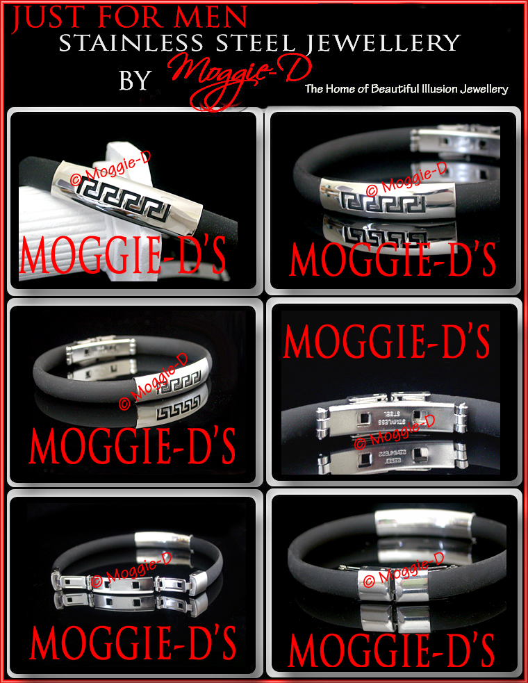 This sensational Men’s 8mm wide Bangle features a Black GREEK KEY design which has been inlaid into the front of the Highly polished & rounded 316L Stainless Steel ID Plate. The smooth & rounded Black Rubber Bangle is finished with a Highly polished Spring Lock Stainless steel Clasp to ensure a secure fit.