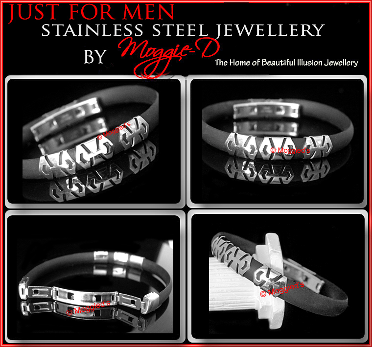 This sensational Men’s 8mm wide Bangle features a Solid 316L Stainless Steel Tribal design. The smooth & rounded Black Rubber Bangle is finished with a Highly polished Spring Lock Stainless steel Clasp to ensure a secure fit.