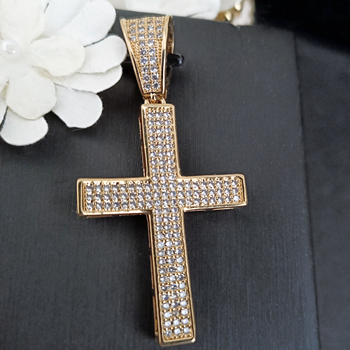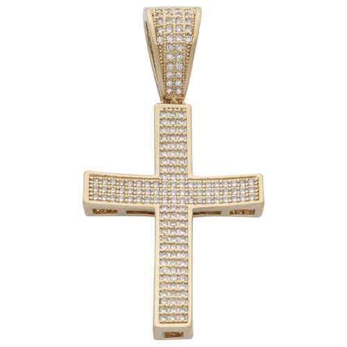 CZP-493 14k Gold GL Created Diamond Encrusted Cross Pendant